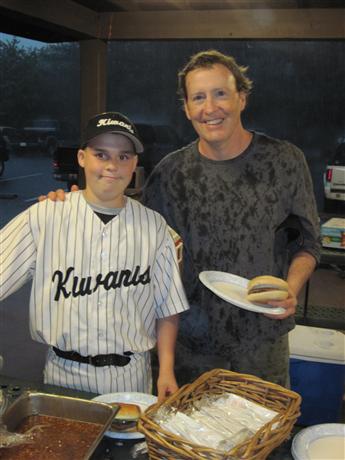 Above, Kiwanis Little League team coach Steve and his son Satchel.