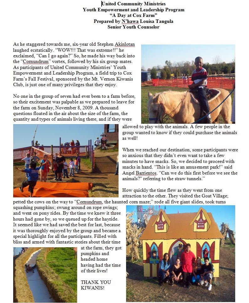 - Mount Vernon Kiwanis Sponsors Field Trip to Cox Farm