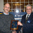 Tim Webb (left) representing the Happy Harrys pharmacy on Route 8 in Dover is presented a plaque by Ron Smith (right), long time chairman of the Dover Kiwanis Club Children's Halloween Costume Review, in appreciation for the store's support of the event held at the Delaware Agricultural Museum each year on the Saturday before Halloween.