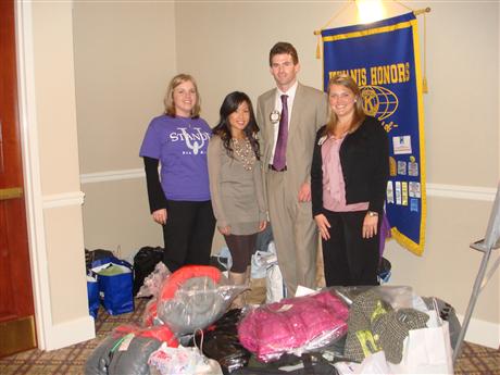 In the attached picture from a past on-hands activity with Stand Up For Kids - left to right- Co-directors of marketing Mackenzie Morris and Jenny Reynolds, and Club Members Chris Hall and Katie Warnken. In the Fall we collected Winter coats and jackets for the homeless youth.