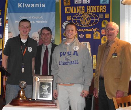 Congressman Rob Wittman recently spoke to the Colonial Capital Club. e is shown here with two Key Club members from Williamsburg Christian Academy and club president Art Kohler, on the right.