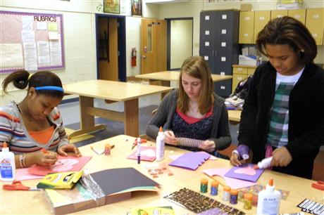 Yorktown Middle School Builder's Club is all Heart! Students in Yorktown Middle School's (YMS) Builder's Club put their artistic skills to work for the residents at the York Convalescent and Rehabilitation Center. Creating beautiful handmade greeting cards, students worked with the goal of bringing a Valentine's Day smile to the faces of Convalescent Center residents. Sponsored by the Grafton Kiwanis Club, YMS Builder's Club provides opportunities for students to give back to the community.
