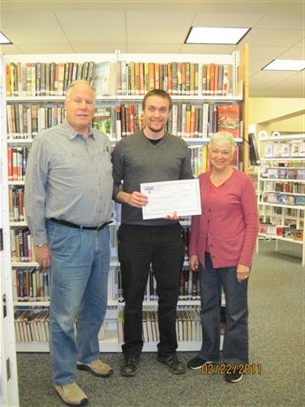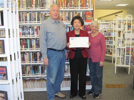 Pictured: Books for Breakfast - The Kiwanis Club of Tabb presented a check of $500 to Poquoson Public library to provide books to children who eat breakfast at Poquoson schools. This is the 5th year Tabb Kiwanis Club has partnered with Poquoson Library in this early literacy program. The library staff visit the schools in February and in May to provide these students with story hours, book talks and free award-winning books to keep. Attached picture is taken at the check presentation ceremony on February 22, 2011. (left to right) David Pine (President of TKC), Elizabeth S. Tai (Director of Poquoson Public library, and Judith Letchworth (Treasurer of TKC)