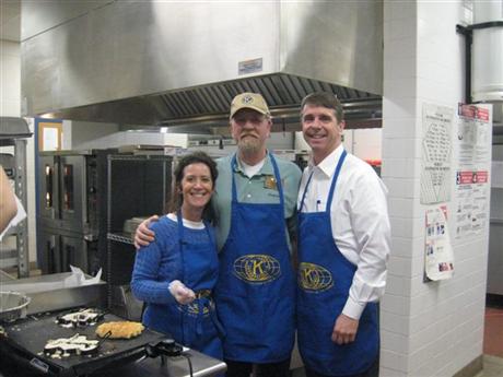 The members of Tabb Kiwanis Club held their 4th Super Pancake Breakfast fund raising event at Tabb Elementary School on February 5. Funds were raised to benefit Tabb Elementary School and our community. Attached picture was taken at the event. Becoming a member of TKC, please call 766-7931. Thanks. Pictured: in the kitchen making monkey and elephant shaped pancakes are (Left to Right) Nikki Tanzer, Bob Williams, and Congressman Rob Wittman.