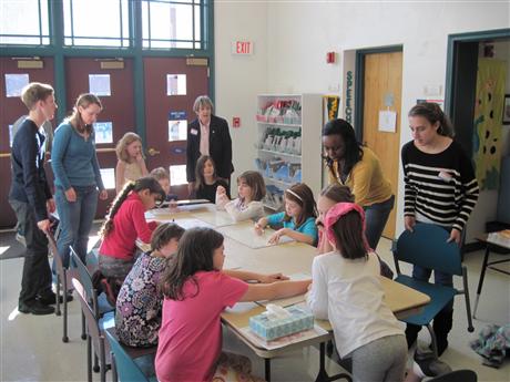 Kiwanis-Kids is a student-led service organization for kids in elementary school. Members will be learning important leadership skills by running meetings and volunteering in the school and for the Charlottesville community. Some of the planned service projects approximately 15 second, third, and fourth graders will be doing this year include making goody bags for the patients at the University of Virginia Children's Hospital, writing letters and cards that will be sent to service men and women, and making colorful bookmarks for the children's department at the Jefferson-Madison Regional Library. Members of the CKI Club at the University of Virginia, led by Tameka Glover of Smithfield, Virginia, have stepped up to organize this club. They plan and conduct the activities every Monday afternoon between 3 and 4:15 p.m. Volunteers from the sponsoring Kiwanis Club, including President Barb Ritter, have come out to observe and to join in this outstanding intergenerational project.