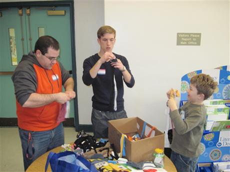 On February 13, Past Capital District CKI Governor, UVA grad, Brian Cofrancesco (left), paid a visit to Charlottesville, and working alongside current CKI at UVA President Nathan Cunnigham, showed the K-Kids how to make dog toys. Brian is now a proud member of the Kiwanis Club of Meriden, Connecticut.