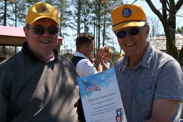 The York County Virginia Head Start program recently presented an award to Frank Dowd (left) and Harry Pearce (right) who are in charge of the Young Children Priority One Committee for the Kiwanis Club of the Colonial Capital. The award is for service to the Head Start program and was presented during the Club's "Parents Fun Day" in April. This annual event is structured to enable parents and their children to enjoy a friendly family affair at the end of the Head Start year.