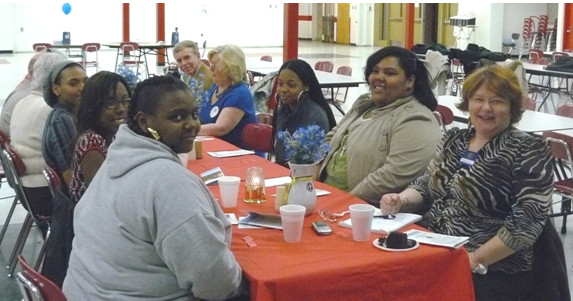(Above) Pictured above are some of the Smyrna High School Key Club members enjoying dinner with Dover Kiwanians Dorothy Doyle (right side front) and Marylois Barnas and Ken Ellers (Right side at end of table).