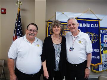 Pictured (L to R) are Kiwanis Club of Greater Ocean Pines-Ocean City President -elect, Roy Foreman, Worcester County Program Director for Commission on Aging Debbie Ritter, and Kiwanis Meals on Wheels Program Chairman Jerry Powell. Ms. Ritter was the guest speaker at the Kiwanis weekly meeting on April 7th at the Ocean Pines Community Center where she spoke to the membership about her department and thanked the Kiwanis Club for the many years they have volunteered for the Meals on Wheels Program.