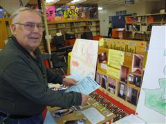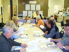 Pictured above is Vice Principal and Curriculum Resources teacher, Sandra West, instructing the Kiwanians about how to judge the projects. Also pictured is Kiwanis member Skip Denning as he judges an art project about the historic Atlantic Hotel in Berlin, Maryland. The students submitted well over 200 entries, all of which were great.