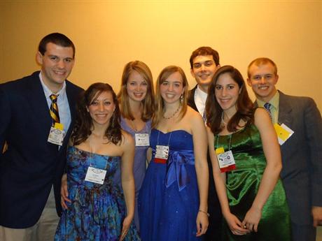Nine students from the Key Club of Great Mills High School attended the Capital District Key Club Convention in Arlington, VA on March 25-27. Great Mills was recognized for obtaining the silver level of membership growth, donating more than $250 to UNICEF, submitting early-bird dues, and participating in both the district and governor's project this year. From left: Matthew Brigham (VP 2010-11), Caroline Brigham (Secretary 2010-11 and President 2011-12), Kate Farran, Sarah Barrett (Editor 2010-11), Gina Holden (Treasurer 2010-11), Emily Kwasniak (VP 2011-12), Justin Valentine. Front row from left: Becca Butner (VP 2011-12), and Chelsea Baxter (President 2010-11).