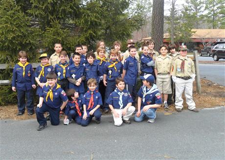 | The Ocean Pines Cub Scout Pack 480 cubs are pictured outside the Ocean Pines Community Center at the celebration of the 2011 Blue and Gold Dinner held in March of 2011. The Cub pack is very active with a large number of boys participating in Scouting. On March 29th they also participated in a cleanup day at the Isle of Wight Park off the Route 90 bridge going to Ocean City with which the Kiwanis Club of Greater Ocean Pines - Ocean City participated as part its Project One Day for Kiwanis. The Kiwanis Club is also a sponsor of Cub Pack 480. |