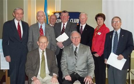 This group picture shows:Front Row, L-R, 30 yrs, Coley Bye; 25 yrs, Ed Bauer; Back Row, L-R, 45 yrs, Tom Herlihy; 35 yrs, John Mason; Trustee Dale Collins; 25 yrs, Art Eppihimer, 50 yrs, Joe Dulin; LTG Marianne Smith; Pres. Dave Wilson