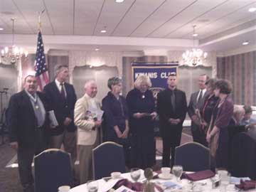 Pictured, Joanne Malkin inducts 4 new members into the Mount Vernon Kiwanis Club. From left to right are : Paul Mehler (sponsor of new member, Fred Harbin), Free Harbin, Bruce Malkin (sponsor of new member, Barbara Callahan), Barbara Callahan, Joanne Malkin (Recruitment Chair), Perry Leonard (new member), Bob Valone Sponsor of new member, Perry Leonard), Marilyn Valone (sponsor of new member, Erin Rhoads), Erin Rhoads