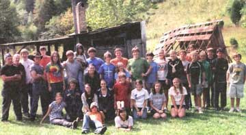 The young people helped take down an unsafe barn, shown