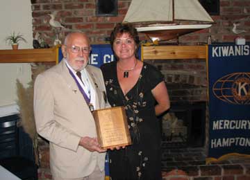 On September 22nd, the Kiwanis Club of Mercury 64 honored E. Frank Dulong for his 21 years of uninterrupted service as the Club's Secretary. During that time, Frank ensured that all reports were submitted accurately and on time and mentored each new Club President on Kiwanis policies and procedures. Frank's sustained service materially contributed to Mercury 64 being one of the strongest clubs in Division 13 that has provided significant support to Kiwanis International and the Hampton Roads community. Pictured are Frank with Club President, Amy Thorstad.