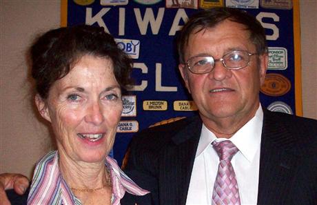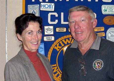 Tommy Grunwell was a recent speaker to the Kiwanis Club Frederick. Grunwell spoke to the group about the "Batle Field Memorial" which is now at the Reserve Center. The memorial was created to honor those killed in action. Mr. Grunwell talked to the club about the long process that was involved in the creation and design of the memorial and talked about the artist that created it. Kiwanian Sue Vona is with the speaker.