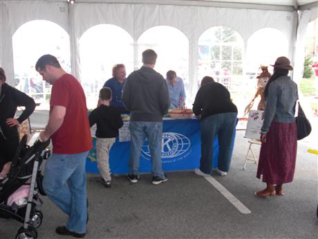 Kiwanis members helping visitors fill out raffle tickets for a lucky chance to win an IPAD.