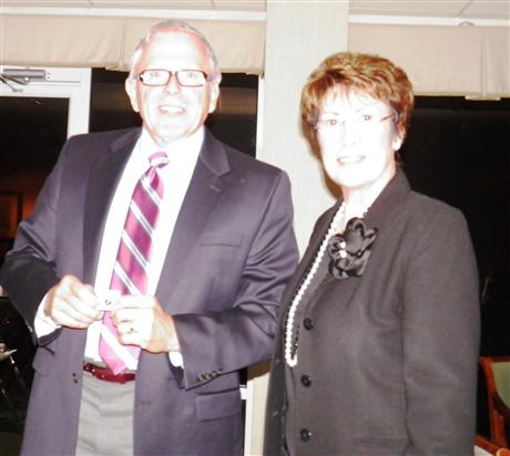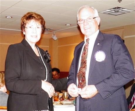Div 11 Lt. Gov. Marianne Smith installed President James Kunkle and the 2010-11 slate of officers at the October dinner meeting. After retiring 2009-2011 Officers and Directors, including now Past President Ken Drerup, Lt. Gov Smith installed two new Directors, Julie Beebe and Margaret Spaulding, Vice President Bob Bacon, President-Elect Joe Brake and President Jim Kunkle. The Rehoboth Club recognized Ken Drerup for his service as President with the Capital District Foundation Life Member Award. Representative from the JMB High School Key Club attended the Installation meeting and Key Club Key Advisor Rosemary Cummings presented Gavin Jones with his Vice President pin. Jim talked about the need to retain members and to recruit members. Several guests at the meeting expressed interest in learning more about Kiwanis and possibly joining Kiwanis.