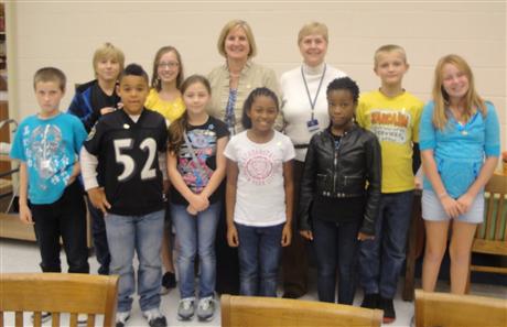 Pictured (Front L to R) are President Jake Ginther, Treasurer Sarah Wenzel, and V.P. Kyla Taylor. (Back Row L to R) Educational Assistant from BIS and a member of Kiwanis, Jane Slotter, who is the sponsor for the Builders Club, Kiwanis Club of Greater Ocean Pines-Ocean City Mike Morton, and Kiwanian Peg Morton, who is the liaison to the Builders Club. Builders Club Secretary, Samantha Stephans, was not present.