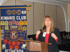 Bottom right: Most Americans understand the threat posed by the foreign leaders and their followers who have sworn to annihilate us. Cindy Notobartolo, Suburban Hospital Emergency/Trauma Corporate Director, addressed us not only on how the Maryland medical and emergency service organizations have prepared themselves but also what you can do in your home. You should have medical supplies, water, food, a portable radio and other supplies as well in your home. If you are required to evacuate, a "Grab Bag" of such necessities to be ready in an instant to leave your home or office is recommended. This also includes financial records, passports, other I.D., some cash, gasoline and a PLAN. This is sound advice on this seventh anniversary of the attacks on New York City, Washington and the downing of the jet airliner in Shanksville, PA. Thank you, Char, for bringing us this program. |