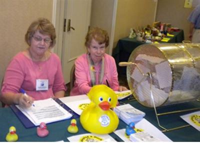 As many of you know, these proceeds benefit the seven pediatric hospitals located within our Capital District. As result of this annual fundraiser, plus income from the Caring Corner sales, Past Governor Riley's Pin Sales, and the $ 2.00 per member campaign, this year each hospital will receive over $2,500.00. (right, Sandra Maranto and Betty Allen selling Ducky Derby Certificates.)