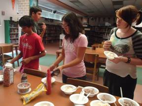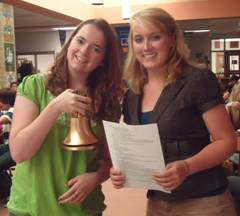 (Above left) The Key Club of Great Mills High School included an ice-cream social in their first meeting of the year. The event was well attended by approximately 75 students, and the student officers were excited to share news about numerous upcoming service projects and fundraisers. They also showed a video about Key Club for the benefit of freshmen and new members. Shown above right are Caroline Brigham (President) at right, and Julia Lynn (Editor). Great Mills has recently participated in welcoming home events at the local navy base for returning military from Iraq and Afghanistan, carwashes and bake sales to fundraise for the Eliminate Project, and a reading night at a local elementary school. They plan to participate in Trick-Or-Treat for UNICEF, and host their first ever Key Club week by planning daily Key Club activities at their school in November.