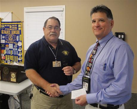 . The purpose of Kiwanis is "Serving the Children of the World" which ties in directly with supporting the schools in the Kiwanis Club of Greater Ocean Pines - Ocean City area. Pictured is Kiwanis President Roy Foreman presenting a $1000 check to Roger Pacella, Principal of Buckingham Elementary School in Berlin, Maryland. for use with their school programs. Buckingham Elementary also has a K-Kids Club which is the Kiwanis Club at the elementary school level where the students learn to do service to their community.