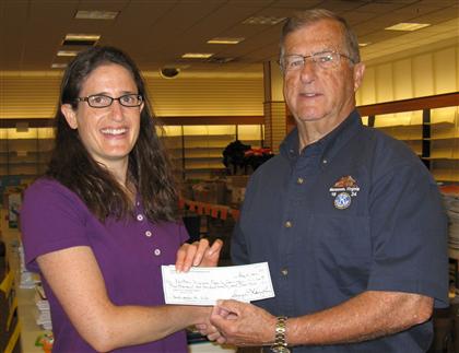 Pictured above: Mr. Don Evick presents a check from Manassas Kiwanis club to Ms. Karen Horowitz, Community Engagement Specialist, NVFS.