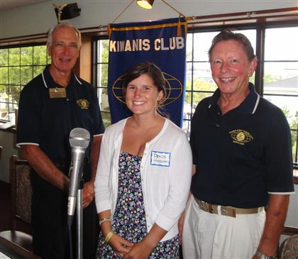 Pictured is one of the seven 2010 Kiwanis Scholarship local winners, Devon Harmon, after she addressed the members of the Kiwanis Club of Greater Ocean Pines - Ocean City which awarded the scholarship. On her left is club President, Dan Peletier, and on her right is the Club's Programs/Speakers Chair, Jack "Graham" Caldwell, who arranged for her to speak at the Wednesday August 18th meeting at Hall's Restaurant in Ocean City, MD. Devon, a 1020 graduate of Stephen Decatur High School in Berlin, Maryland, will be attending Penn State University in the fall and majoring in International Relations. Her goal is to someday hold a position in government.