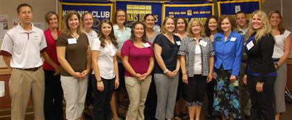 The Kiwanis Club of Poquoson showed their support the local Poquoson City Schools by hosting all new teachers at their regular Tuesday morning breakfast meeting. Club President Walt Burns presented each new teacher with a $50 gift certificate to support purchases of extra classroom supplies. New Teachers Group Photo; (l. to r.) Tim Hatok, Tamara Gentile, Kerry Griffin, Shannon Henry, Lindsay Bunting, Victoria Maurer, Jaclyn Sinclair, Jessica Adams, Jennifer Schuster, Antonia Diggs, Alice Payne, Kara Snider, Christine Tyler, Shea Scotti, Hadley Silver, Margo Grant.